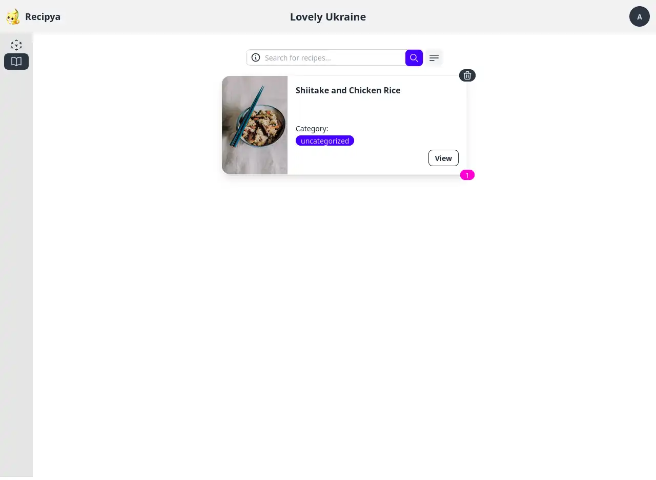 Your cookbook is empty after creation. You can add recipes by searching for them in the search box.
