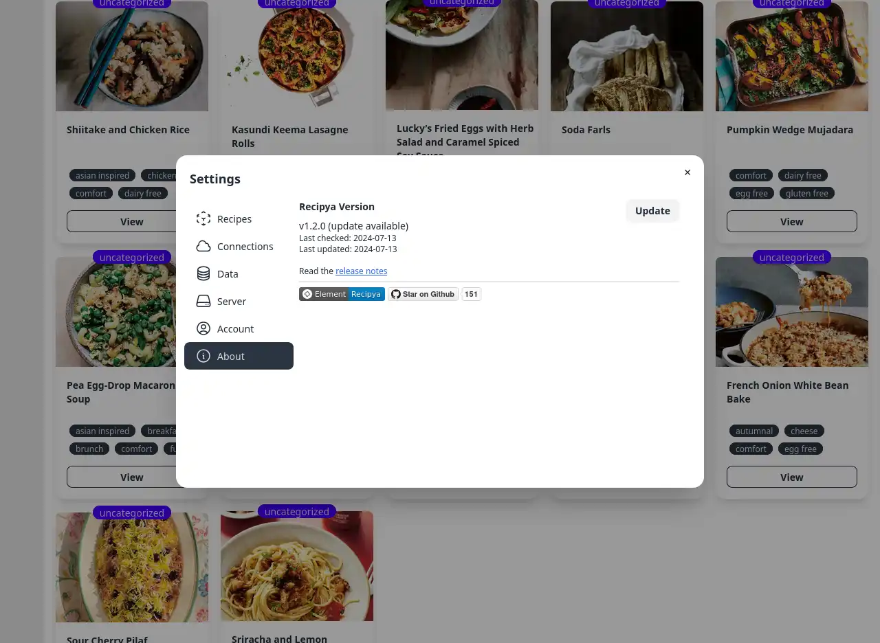 up under /path/to/recipya/Backup/global before the update in case something goes south. The update checker is